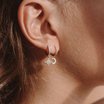 These charming dangling earrings feature a CZ adorned crescent moon and star, the perfect detail to dress up an otherwise minimal design. Gift this to the dreamers in your life to remind them that the sky's the limit.