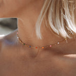 Dive into a tropical dreamscape with our Aloha Choker. This piece, with its pop of color, evokes memories of golden sunsets and pristine beaches. It's the essence of island chic, ready to elevate any outfit!