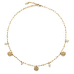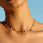 Inspired by sun-kissed shores, this choker pairs radiant mini sun charms with genuine pearls. A perfect piece for those who carry the beach vibe wherever they go!