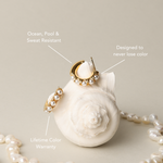Our mini pearl huggie earrings are the perfect companions for your daydreams and wild nights. Lightweight and waterproof, they are made for everyday wear !