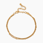 This bracelet features a smooth snake chain paired with a delicate satellite strand—layered together for the perfect contrast of shimmer and fluidity. Designed to wear on repeat, this piece adds a polished finish to your stack with zero effort. Modern, versatile, and made to glow from day to night.
