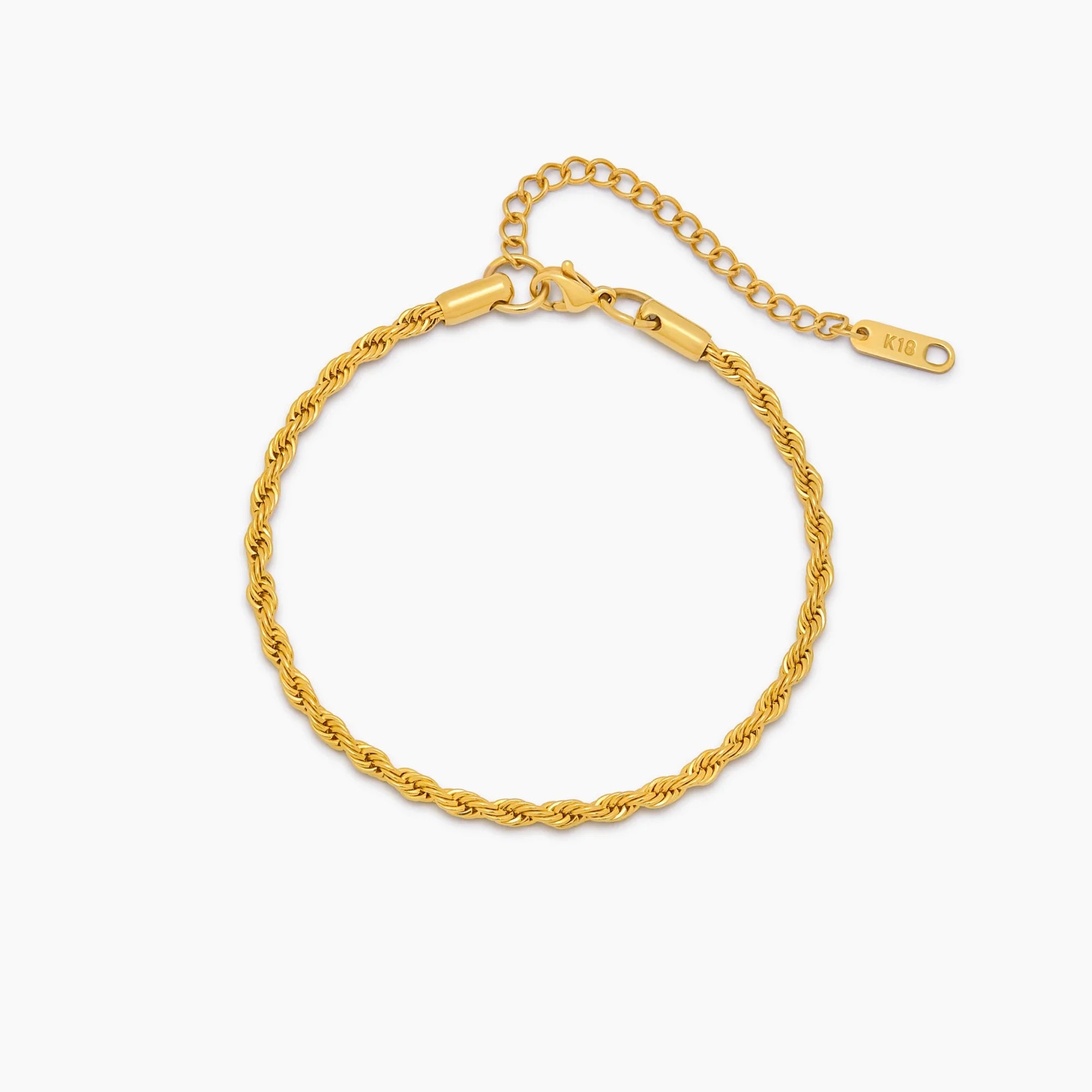 Elevate your everyday style with the perfect blend of simplicity and sophistication. This Rope Chain Bracelet features a twisted design that catches the light from every angle, adding a subtle shine to any look. Crafted for comfort and durability, it's ideal for daily wear or layering with your favorite pieces.