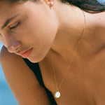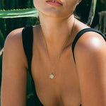 Our Mother of Pearl Pendant is a radiant addition to any jewelry collection. This elegant pendant features a lustrous mother of pearl set in a textured gold frame, perfect for giving your everyday look a little upgrade.