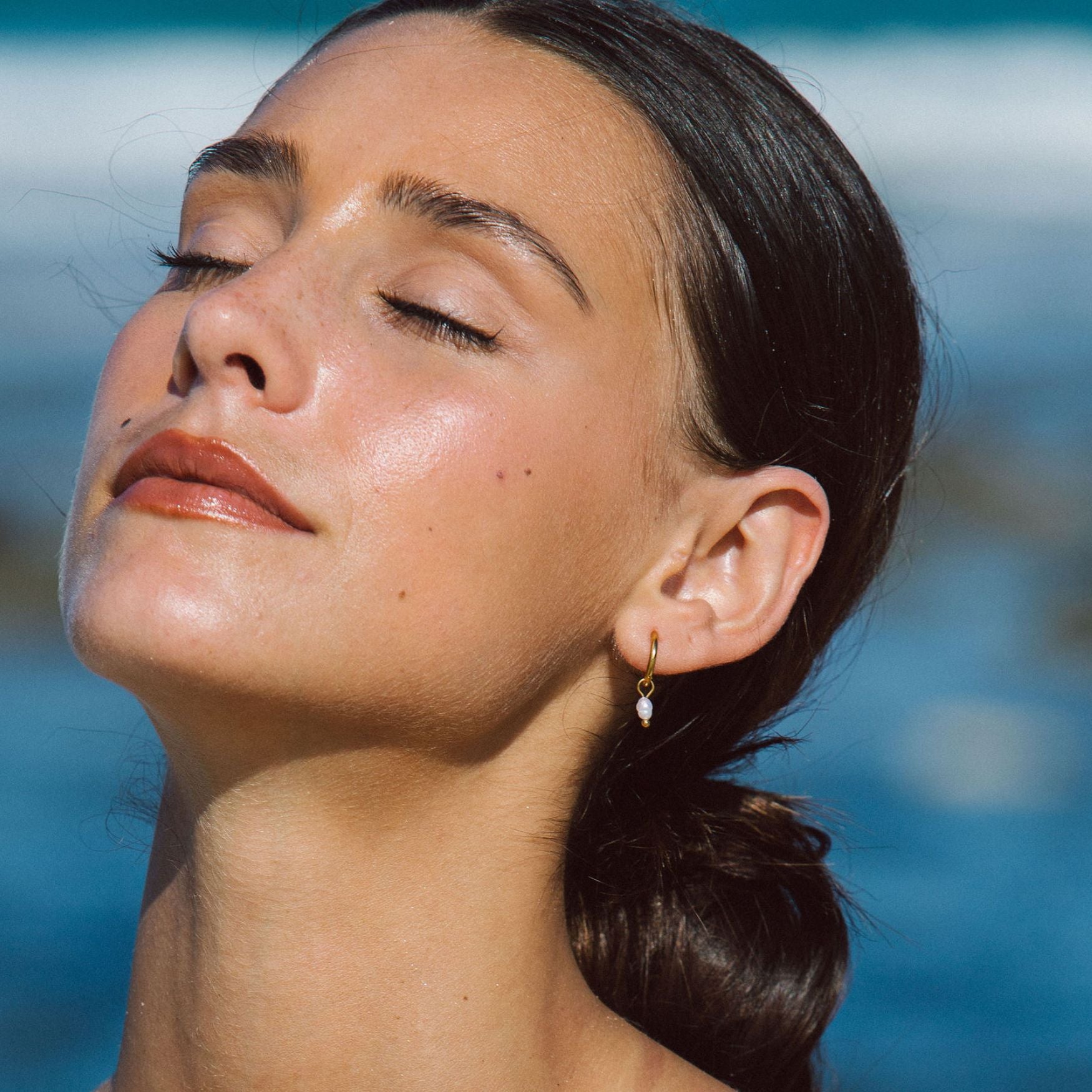 With a genuine freshwater pearl dangling from our fave mini gold plated hoops, these Pearl Huggie Hoops are guaranteed to become your next jewelry obsession.
