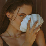Channel your inner French girl with our Croissant Hoop Earrings! Waterproof and lightweight, they are the perfect, twisted hoop to step up your look.