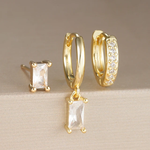 Simple, ultra dainty, but still statement-making. This set features a mix of  dangly hoops, minimal hoops and a ultra dainty stud.  You can sleep, shower, and hang in them all day long.