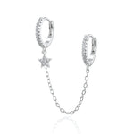 Simple, ultra dainty, but still statement-making. This set features a mix of square diamond hoops, and double piercing chain. You can sleep, shower, and hang in them all day long.