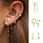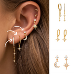 Simple, ultra dainty, but still statement-making. This set features three styles of hoop earrings & two gorgeous mini studs moon & lightning bolt. You can sleep, shower, and hang in them all day long.