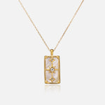 The Aluna necklace captures the magic of the night sky, with golden stars and shimmering mother-of-pearl framed in a delicate pendant — a timeless talisman of dreams and light.