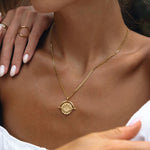 Introducing the Athena Necklace, a symbol of wisdom and empowerment. Inspired by the Greek goddess Athena, this greek coin necklace features a protective eye design, embodying strength and courage.