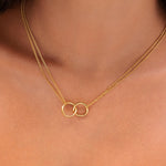Two circles, one story. The Infinity Necklace symbolizes the bonds that never break, crafted to stay with you wherever life takes you.