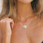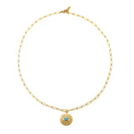 Inspired by the sun-drenched cliffs of Santorini, our Turquoise evil eye necklace is a talisman of luck and protection.