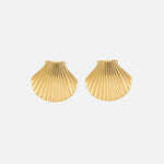 These chic shell-shaped stud earrings are crafted in gold, offering a subtle yet elegant nod to oceanic beauty. Perfect for everyday wear, they bring a touch of timeless coastal charm and sophistication to any ensemble.