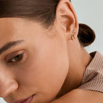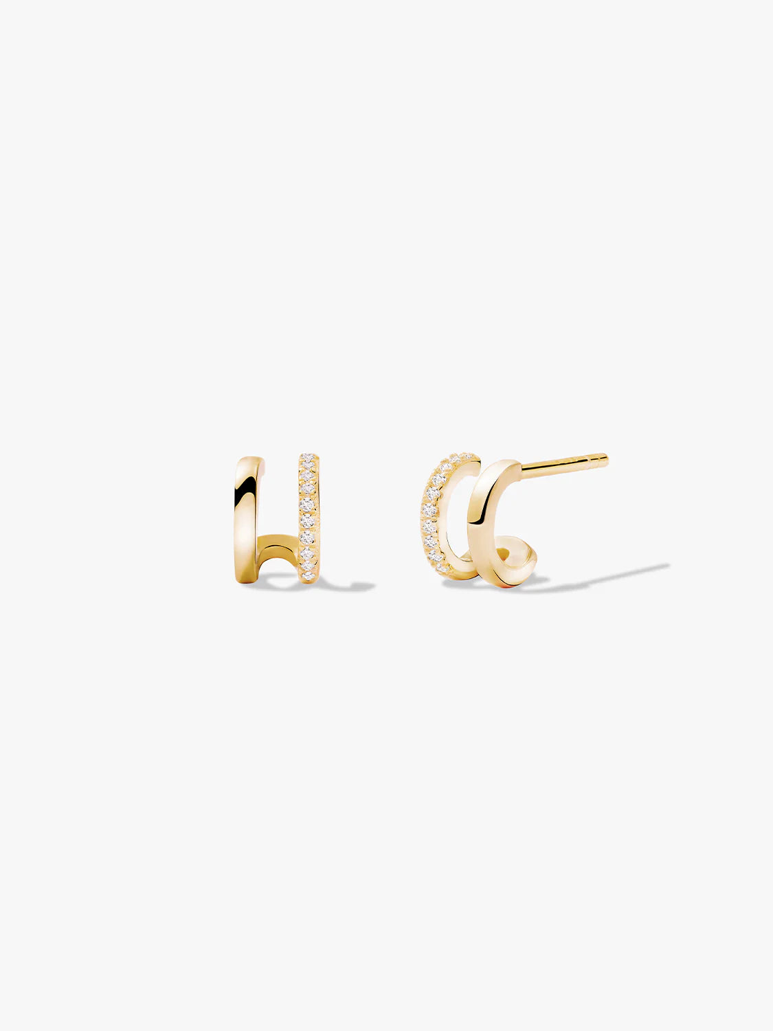 Introducing your upgraded ear stack: meet your new stylish double row huggies! These delicate earrings, adorned with pavé cubic zirconia, create a stacked look with effortless elegance. Wrapping around for a distinctive appearance, they require only a single ear piercing.