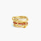 Add a touch of fiery elegance to your jewellery collection with the Astrid Fiery Red Stacked Ring. Crafted from high-quality stainless steel, this bold ring features a captivating mix of vibrant red gemstones and sparkling clear crystals, stacked together to create a stunning statement piece. The unique combination of gold-tone bands and brilliant gemstones ensures it stands out, making it the perfect accessory for both everyday wear and special occasions.