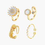 Add a touch of elegance and charm to your everyday look with the Eliz Spinner Ring Set. Crafted with care from 14K gold-plated stainless steel and shimmering accents, this versatile set features four beautifully designed rings that can be worn solo or stacked for maximum impact.