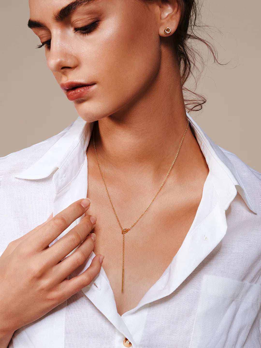 The Chandelier collection features a distinctive design that resembles the gentle swaying of crystal lamps. Its crystal diamonds dangle elegantly, creating a dreamy interplay of light and shadow. The necklace's crystal pendants sway gracefully, resembling tassels and adding a touch of sophistication to its already exquisite design. When worn, the necklace hangs delicately around the neck in a Y shape, with a zirconium-studded chain threaded through the ring, exuding an air of understated elegance.