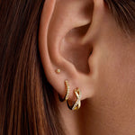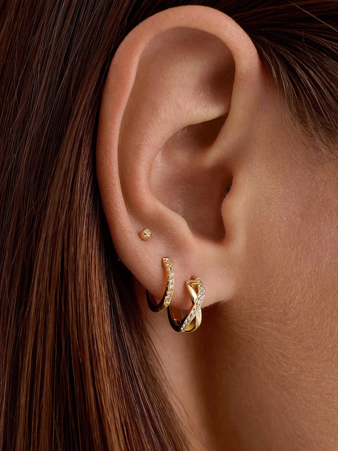 They feature a cross design with half pave sapphire detailing—an absolutely stunning accent for your ear stack. Effortlessly stunning, they are the perfect statement piece for any occasion.