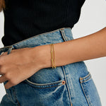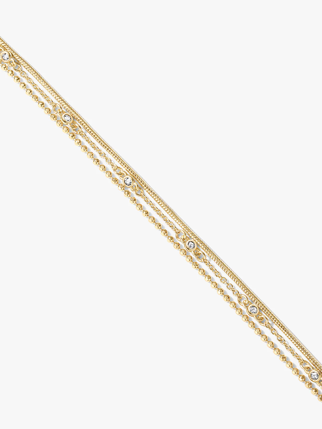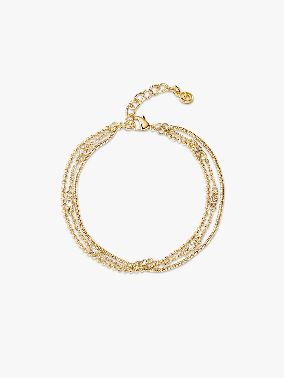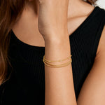 Take the effort out of stacking with the Crystal Bezel Beaded Snake Layered Bracelet Set. This best-selling bracelet combines our three Bracelets in one. Designed with three individual chain layers, this piece goes on easily with a single clasp. It features a touch of sparkle thanks to tiny Cubic Zirconia stones, making it an effortless and chic everyday stapl