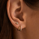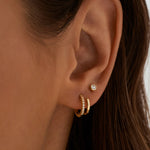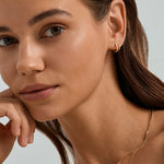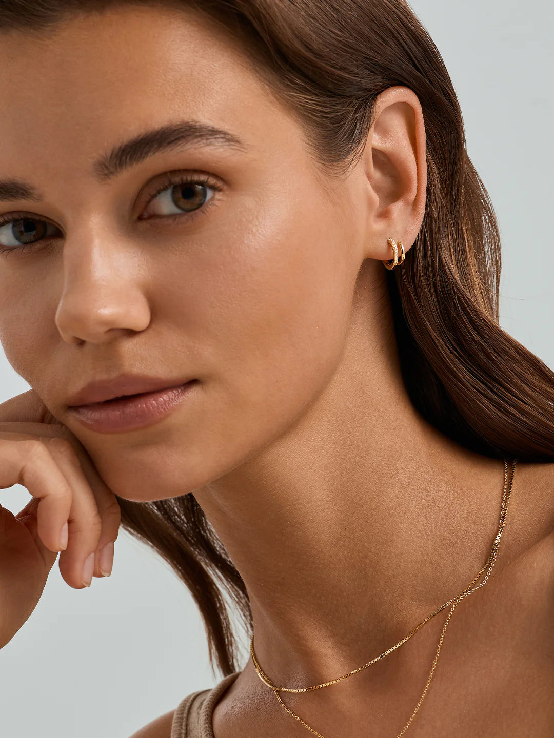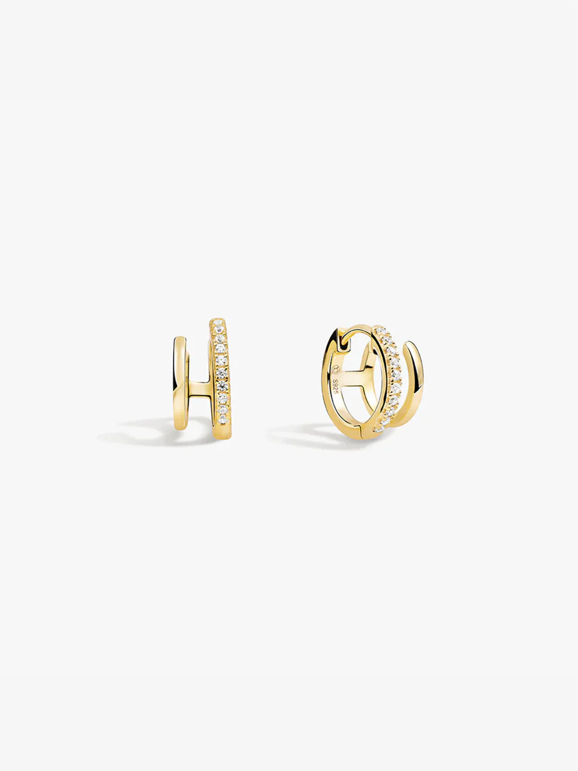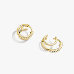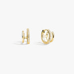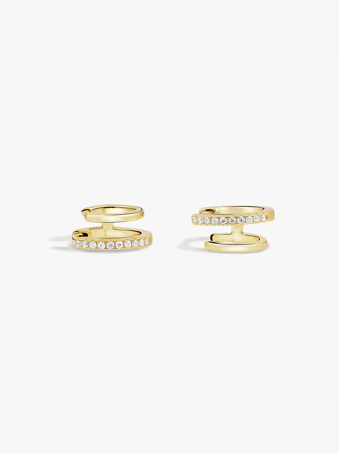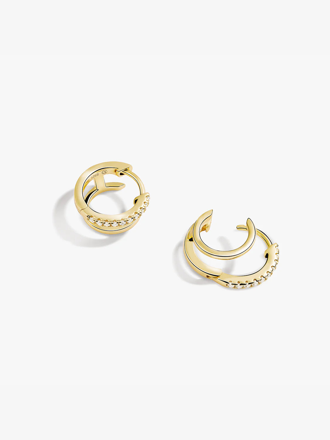 Effortless layers, one simple click. These Crystal Double Huggies mimic the look of a layered stack with just one piercing. With pavé-set CZ and a sleek silhouette, they’re understated, polished, and endlessly wearable.