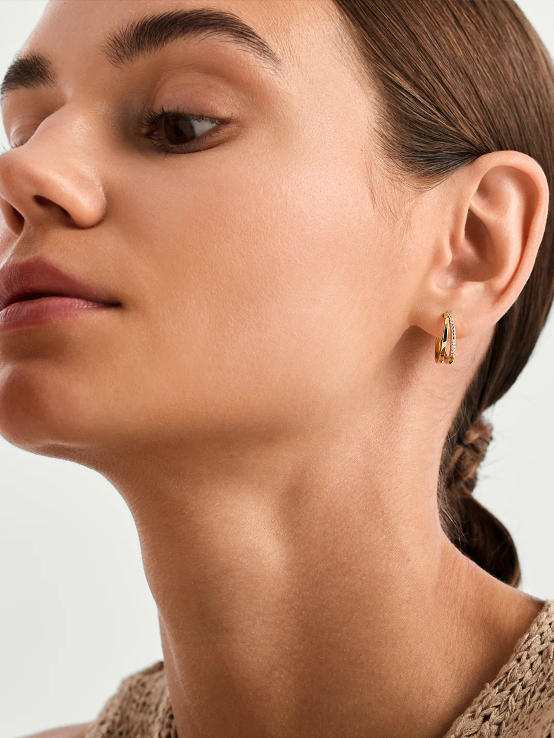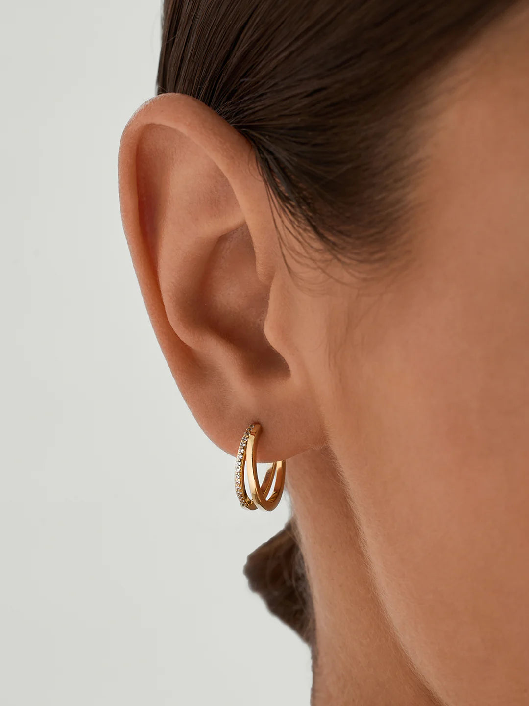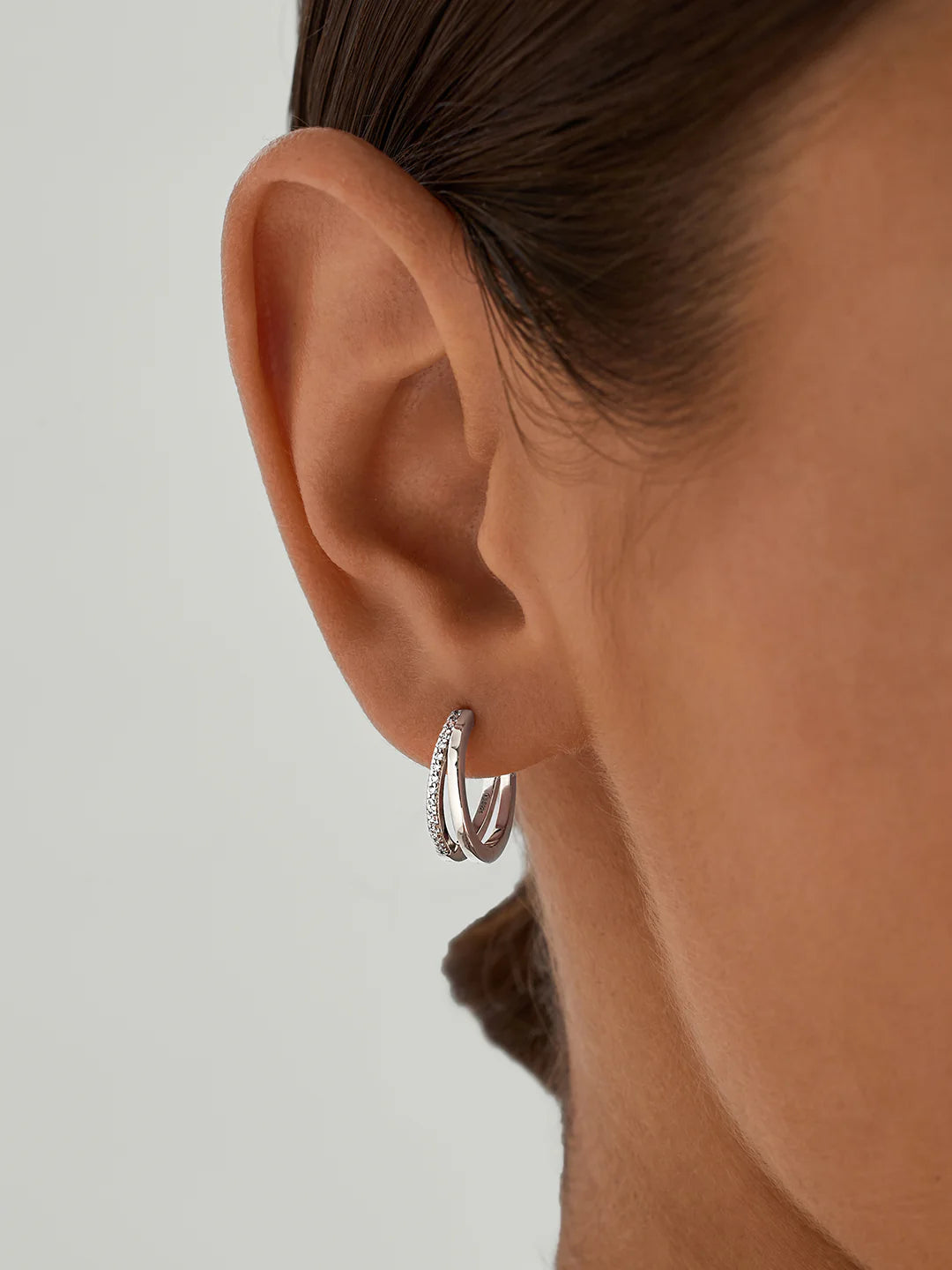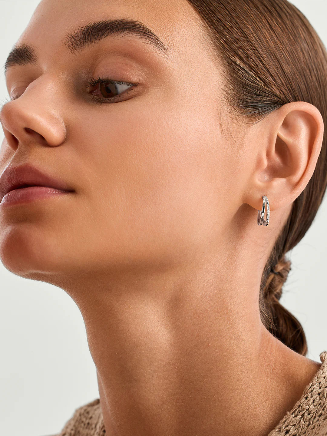 Enhance the shine of your ear stack by doubling it up with our Medium Double Layered Hoops. Featuring a delicate design and dazzling cubic zirconia, these 16mm hoops are perfect for transitioning from day to evening. Whether worn individually or layered, these earrings are sure to impress.