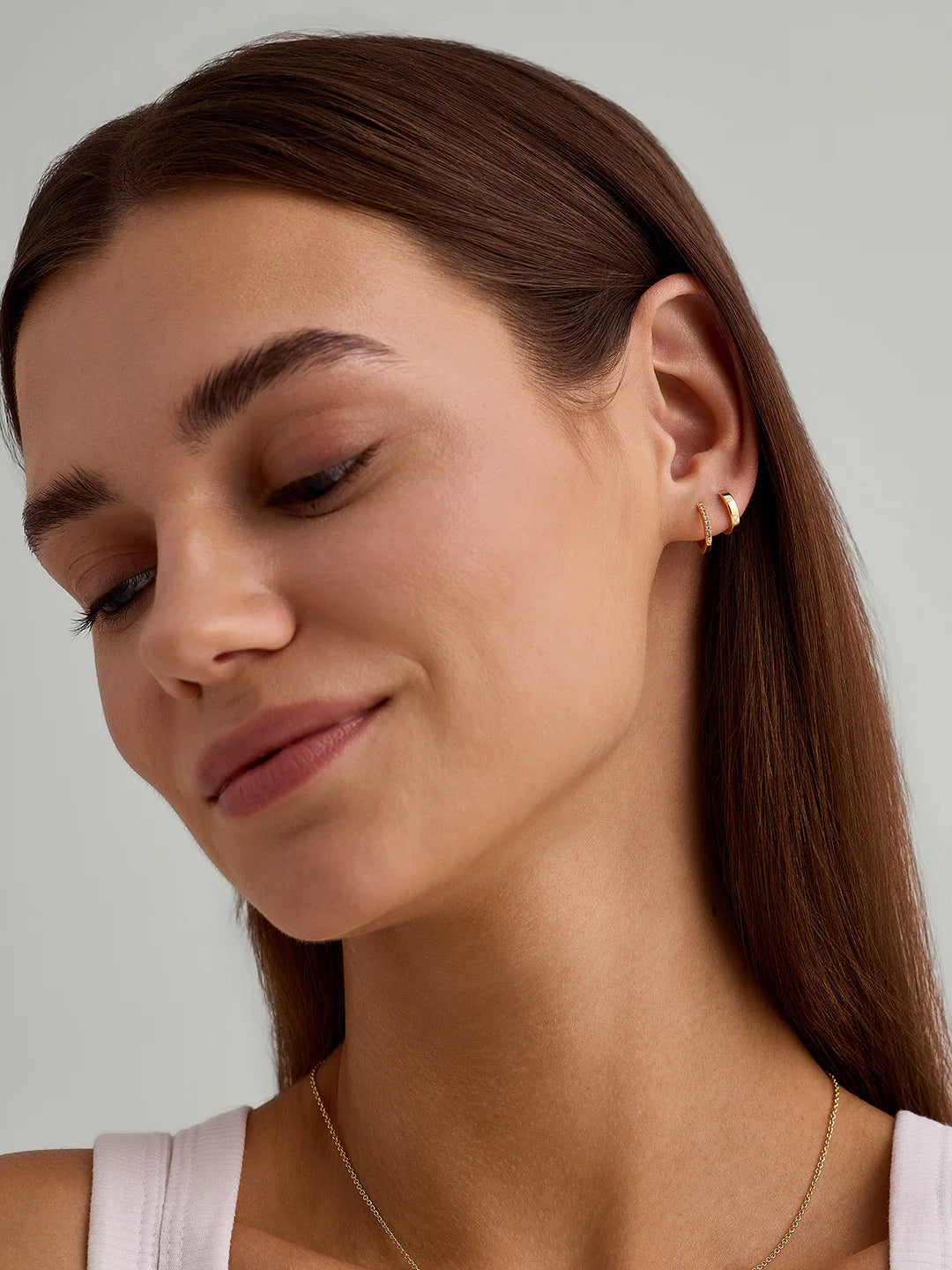 Mini in size, big on versatility. Our Mini Basic Huggie Earrings are designed to hug the earlobe snugly—perfect for a subtle everyday look. Wear them solo, stack them in your second piercing, or pair them with your favorite drop. They’re your go-to essentials for effortless styling.