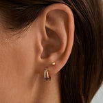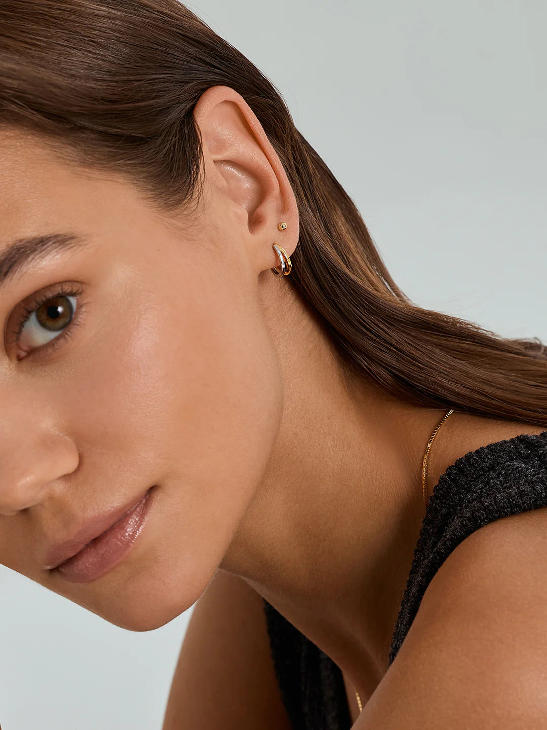 Elevate your ear stack with the Mixed Minimalist Double Semicircle Huggies. Featuring a chic v-split design and a mix of gold and silver, these sleek hoops effortlessly transition from day to night. Style them alone for a refined vibe or stack them for more impact.