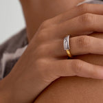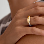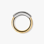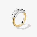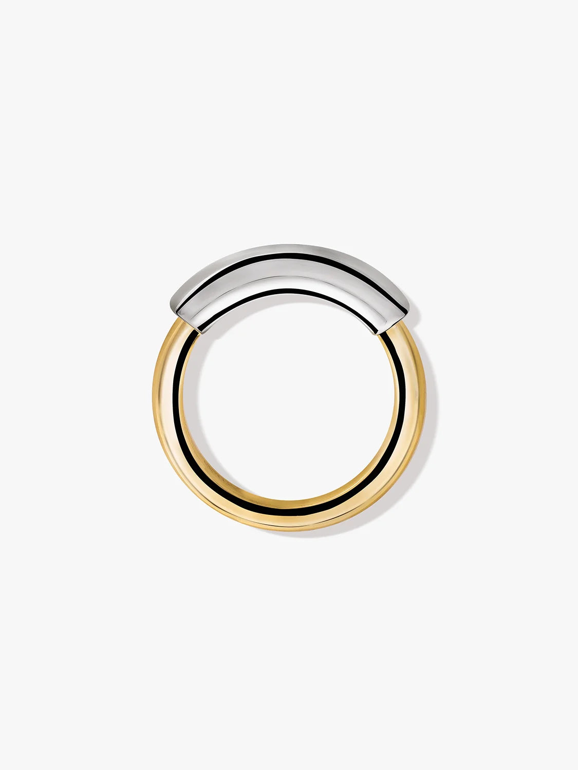 Celebrate the art of contrast with mixed-metal tubes in two distinct widths and tones. This versatile design lets you customize your look—stack your preferred metal at the forefront for a personalized touch.