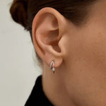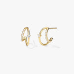 These delicate and shiny double-looped earrings are a must-have. They feature a larger hoop with a prong-set round white sapphire at the front, and a smaller hoop with pave cubic zirconia stones. Handcrafted in 18k Gold Vermeil on Sterling Silver.