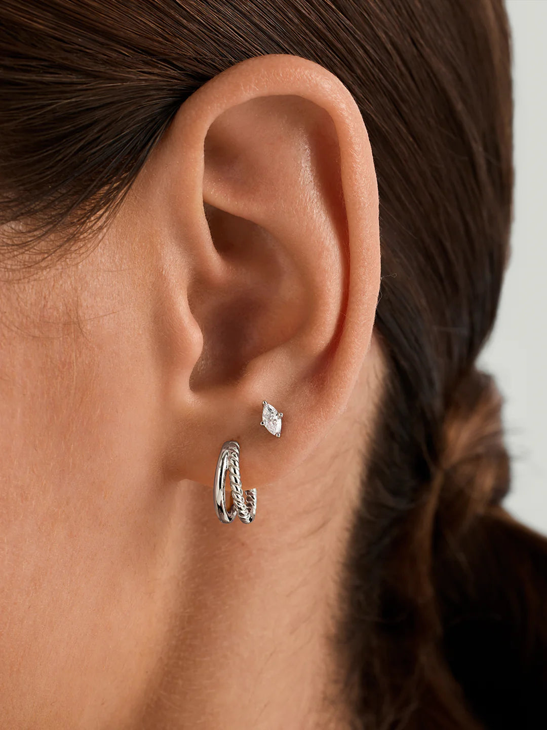 Get a double-stack look with just one piercing. One tube boasts a twist texture for a unique touch. Effortlessly stunning, they are the perfect statement piece for any occasion.