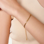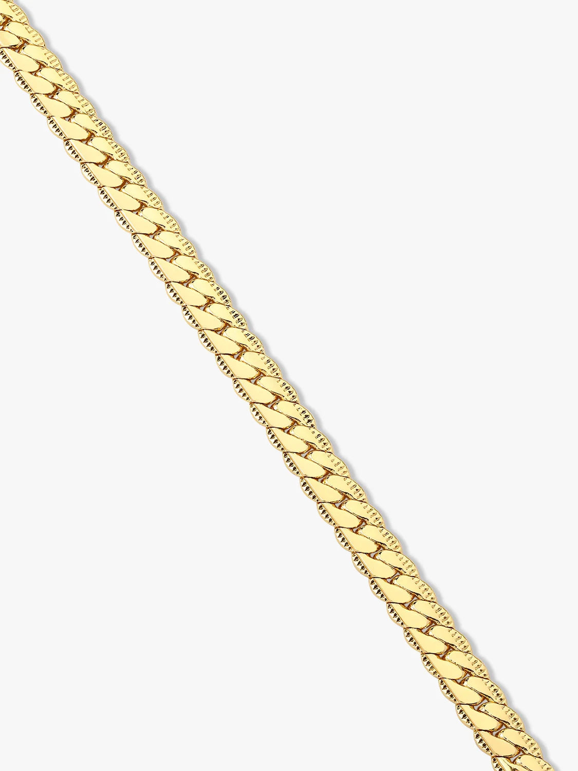 Our herringbone chain bracelet is the ultimate fashion accessory that everyone needs to add to their collection. Whether you want to dress up or keep things simple, this bracelet is perfect for any occasion. It's delicate enough for daily wear, yet radiates elegance when layered with others. The dipped-in-18K gold finish ensures a classic and polished touch, making it an everyday glam essential. You can wear it alone and still create a minimal and chic look or pile it on for an extra touch of sophistication. Our herringbone snake chain bracelet is simply stunning and incredibly versatile, perfect for anyone's jewelry box.