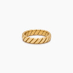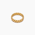 The Bold Twist Ring makes its mark with soft, sculptural curves and a polished finish. A modern staple that brings structure to your stack or stands strong on its own—refined, wearable, and always in rotation.