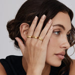 The Bold Twist Ring makes its mark with soft, sculptural curves and a polished finish. A modern staple that brings structure to your stack or stands strong on its own—refined, wearable, and always in rotation.