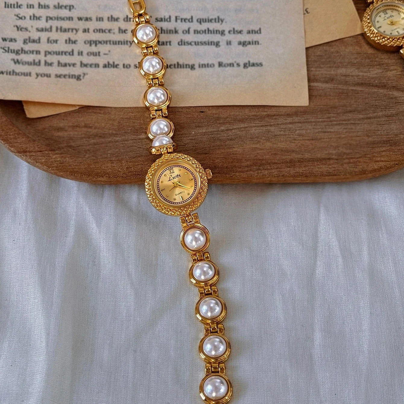 Anara Women's Watch - Elegant Golden Quartz Timepiece with Pearl Inlay