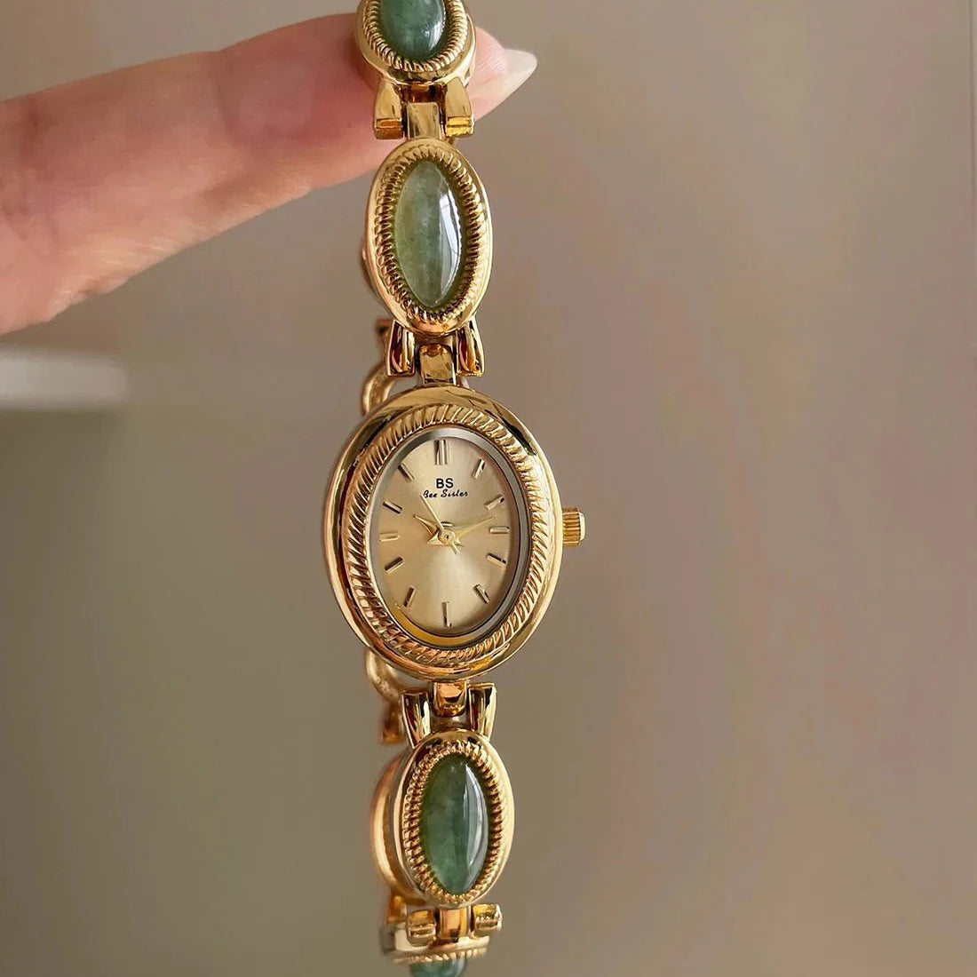 Aubrette Women's Watch - Luxury Jade Bracelet Quartz Timepiece, Elegant Gold Design
