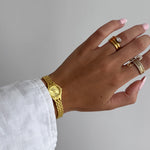 The Elizabeth Watch embodies timeless elegance with a modern edge — a sophisticated timepiece designed for the discerning woman. Crafted with a sleek stainless steel case and available in both 14k gold plating and polished silver, it exudes understated luxury. The minimalist analogue dial, framed by a slender bezel, offers clear numerals and refined detailing that effortlessly transitions from day to evening. Paired with a delicate yet durable link bracelet, this watch is both comfortable and striking—adding a graceful glow to any ensemble. Thanks to our direct-to-consumer model, you get premium watchmaking at an exceptional value. Make the Elizabeth Watch yours today and add a timeless highlight to every outfit.